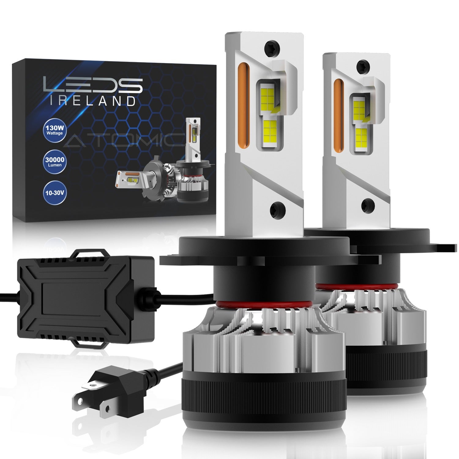 The Atomic Range is LEDs Ireland’s high-performance line of headlight bulbs, engineered for exceptional brightness and a flawless beam pattern. These bulbs are fully compatible with all major vehicle testing standards, including NCT, CVRT, and MOT, ensuring peace of mind no matter where you’re driving. Delivering an incredible 30000 lumens, the atomic H4 is the market leader in terms of performance, price & reliability.