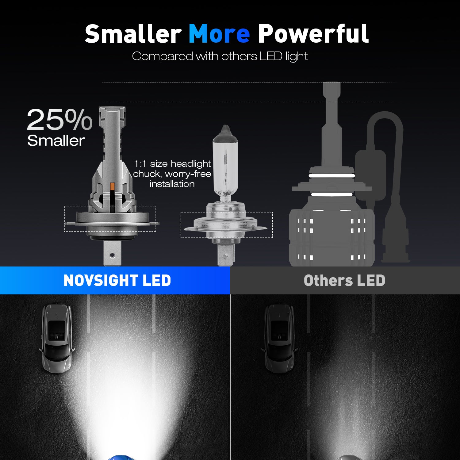 The Novsight N99 Direct Fit H7 is a high-performance LED bulb designed for seamless integration into modern vehicles, with no adapters or modifications required. Engineered with a compact heat sink and true 1:1 halogen size, it fits easily into tight housings, making installation quick and effortless.